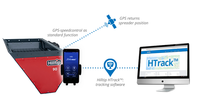 This self-loading drop spreader is compatible with our HTrack™ tracking software. You can track and manage all of your spreading devices and snowplows online on your computer, tablet or smartphone. The program shows treatment route and spreading details on the map in real-time or between specific time intervals. Spreading route details such as speed, GPS location and material used can be summarized and generated as PDF reports.